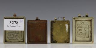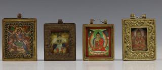 Mongolië, vier ga'u, amuletdoosjes; met afbeedlingen van Witte Tara, Sadakshsari Avalokiteshvara en twee Vajrasattva, eind 19e eeuw