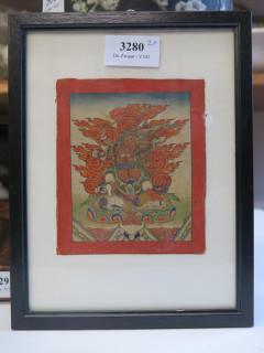 Tibet, twee ingelijste prentjes, een van Hayagriva, de ander Begtse, 19e eeuw