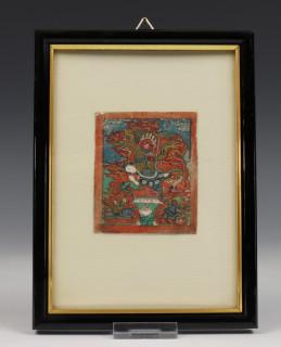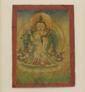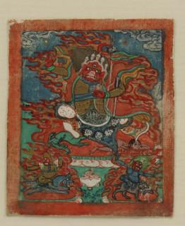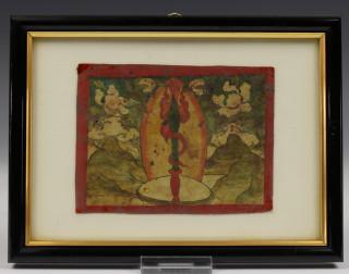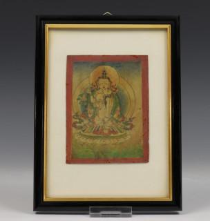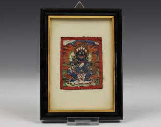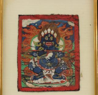 Mongolië, vier ingelijste prenten; Tibet, brandend zwaard en Vajrasattva yab-yum, Mongolië, Panjarnata Mahakala en Begtse,