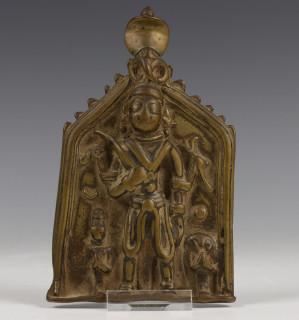 India, koperen plaquette 'Shiva als Virabhadra'; Shiva, Daksha en zijn dochter Sati, 16e eeuw