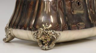 de greep en pootjes met reliëf van druivenranken, met binnendeksel en binnenzijde verguld, gemerkt Friedeberg