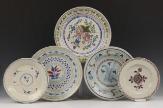 Collectie polychrome aardewerken borden en schotels, 18e eeuw,