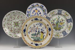 Collectie polychrome aardewerken schotels, 18e eeuw,