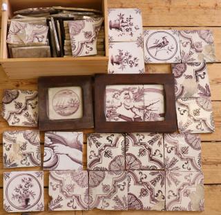 Collectie van veertig mangaan tegels, 18e eeuw,