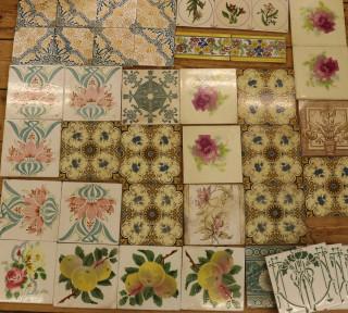 Collectie van veertig polychrome tegels, 19e-20e eeuw,