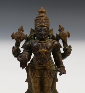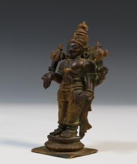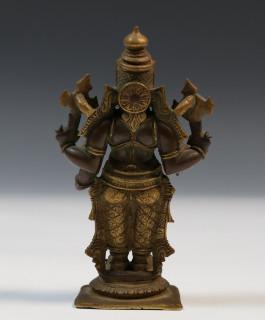 India, vierarmig koperlegering beeldje van Lord Vishnu