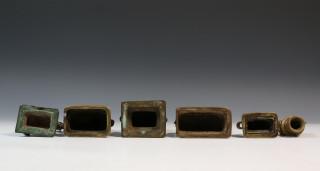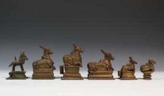 India, five copper figurines of Nandi, mount of Shiva and one bronze horse