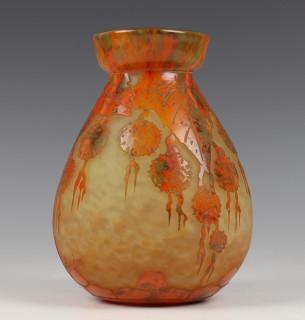 Frankrijk, cameo glazen vaas, 'Platanes', ontwerp Charles Schneider, ca. 1925,
