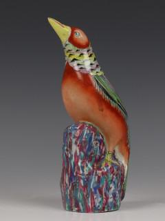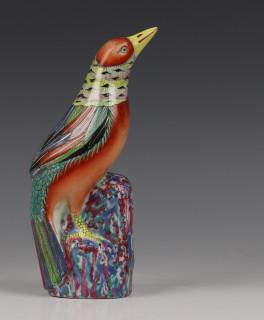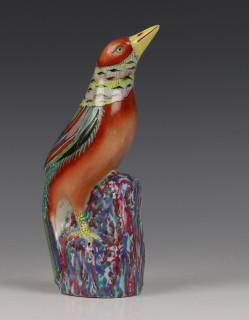 China, famille rose porseleinen model van een vogel, 19e eeuw,