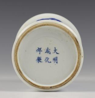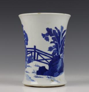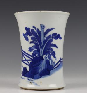 China, blauw-wit porseleinen penseelpot, 19e/20e eeuw,