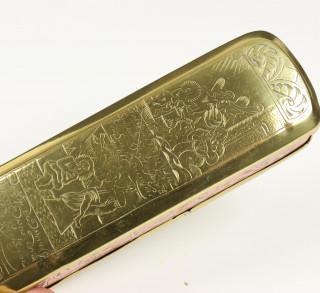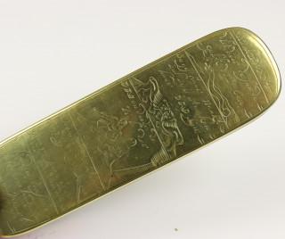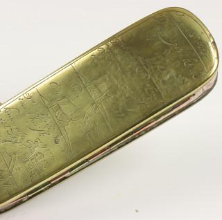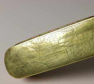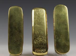Holland, drie geel- en roodkoperen gegraveerde Rebus tabaksdozen, 18e eeuw,