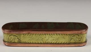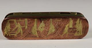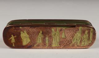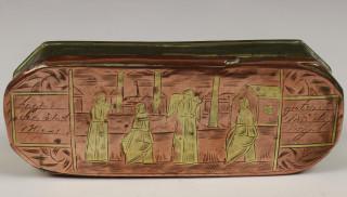 Holland, drie geel- en roodkoperen gegraveerde tabaksdozen, 18e eeuw,