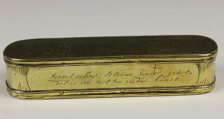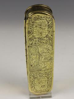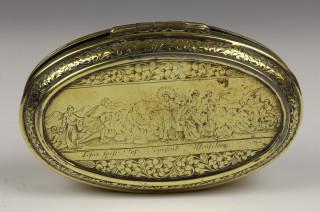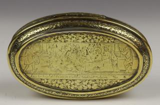Holland, twee fijn gegraveerde geelkoperen tabaksdozen, 18 e eeuw,