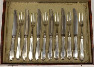 puntfilet, mt. N.V. Zilverfabriek Voorschoten 1937, 2e gehalte in cassette Begeer Van Kempen en Vos,