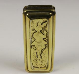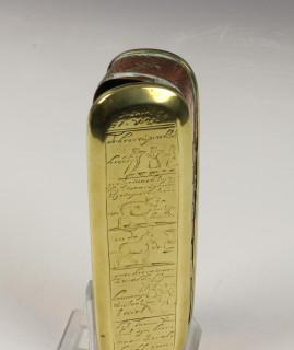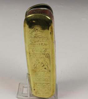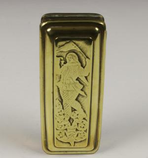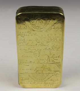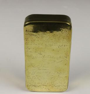 Holland, een geel koperen tabaksdoos met rebus; Mattheus 23, vers 37, 18e eeuw,