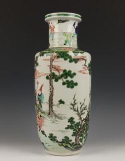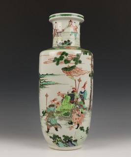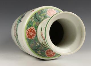 China, famille verte baluster vase, decorated with an equestrian figure near a farmer with water buffalo, 20th century