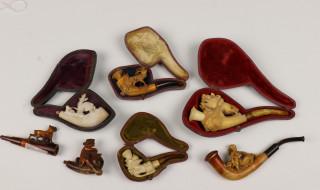 Collectie van zeven (meerschuim) pijpen, 19e / 20e eeuw,