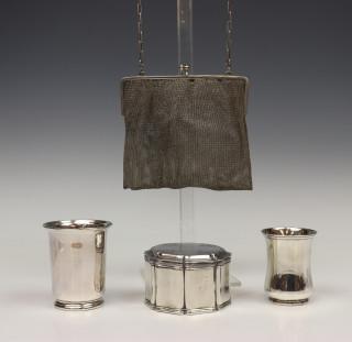 Dekseldoosje, kinderbeker, lepelvaasje, malienkoldertasje en drie diverse gespen, 19e/20e eeuw,