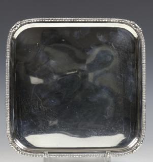 vierkant met afgeronde hoeken, bandversiering staand op vier afgeplatte ronde pootjes, mt. A. Willemse Amsterdam 1937, 1e gehalte,