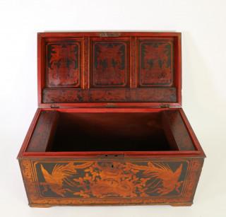 with decoration of lacquer and painted patterns of dragons, phoenix and floral patterns, also on the inside. With two smaller storage containers and three slide containers inside.