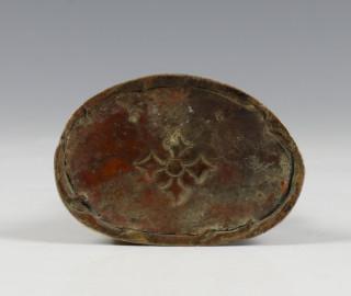 gezeten op lotustroon, met rijke hoofdtooi en vajra in de hand. Met ziel
