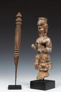Nigeria, Ogoni, decorative seated female figure and Ibo, female polychrome statue