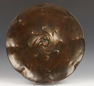 Gelobde gehamerd koperen schotel, Amsterdamse School,