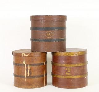 Drie verschillende cilindrische spanen voorraad dozen, 19e eeuw,
