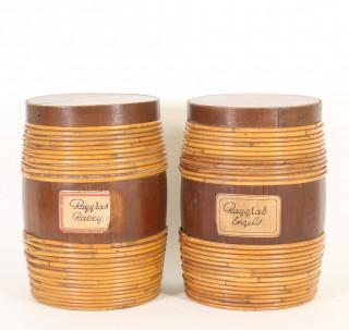 Set van twee gekuipte houten voorraad tonnetjes, ca. 1900,