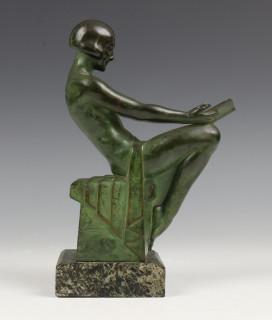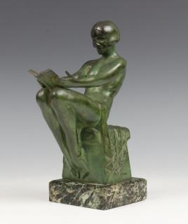 Max le Verrier (1891-1973), groen gepatineerd bronzen boekensteun, Art Deco,