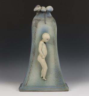 Klaas de Boer, groot keramiek vormstuk en Jolanda Prinsen, twee glazen schalen