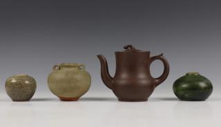 China, yixing trekpotje en drie antiek celadon vaasjes