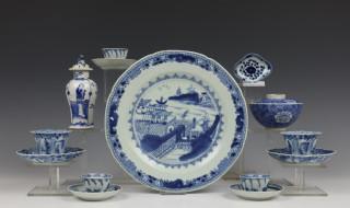 China, veertien stuks blauw-wit porselein, vnl. 18e eeuw