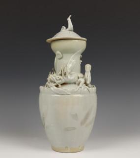 China, celadon vaas en urnvaas in Sung stijl (knop flinter)