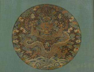 China, paar ronde zijden textielfragmenten, Qing dynastie, 19e eeuw,