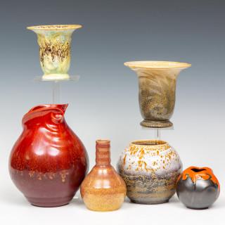 Plateelbakkerij Schoonhoven, zes plateel vaasjes, ca. 1935,