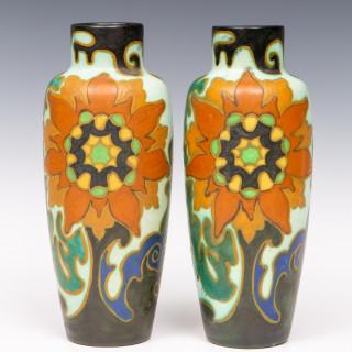 Amphora, paar plateel vazen, ca. 1925,