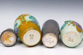 twee met lichtpaars geaderd lusterglazuur en twee met florale decoratie