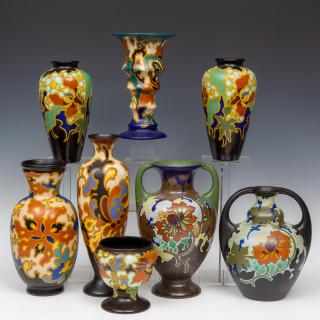 Regina, acht plateel vazen, ca. 1920,