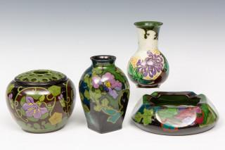 bestaande uit een pique-fleur, een asbak en twee vaasjes