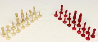 Engeland, een benen roos/wit 'George Washington' schaakspel, ca. 1880,