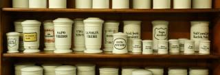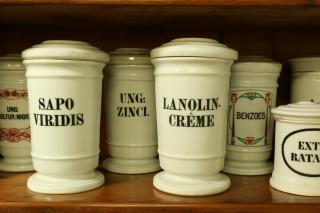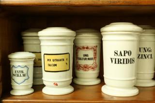 Negentien wit porseleinen zalfpotten, 19e eeuw,