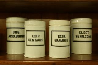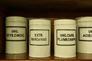 Set van tien wit porseleinen zalfpotten, ca. 1900,