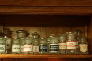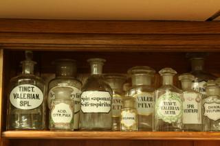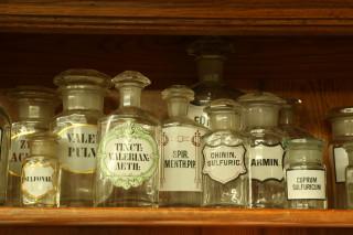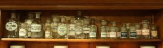 Verschillende blank glazen apothekersflessen, 19e / 20e eeuw,