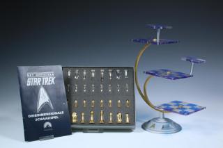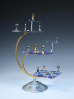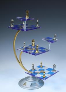 3-dimensionaal schaakspel zoals gespeeld door Captain Kirk en Mr. Spock in de Originele serie. Schaakstukken in de originele doos.