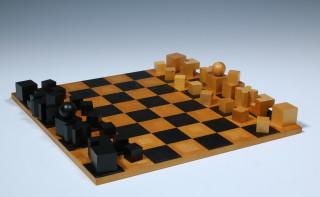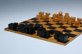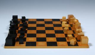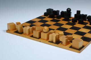 Bauhaus Schaakspel en Schaakbord naar het ontwerp uit 1923 van Josef Hartwig,