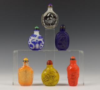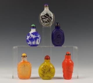 China, collectie van zes glazen snuifflesjes, 19e-20e eeuw,
