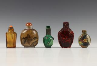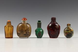 China, collectie van vijf glazen snuifflesjes, 19e-20e eeuw,