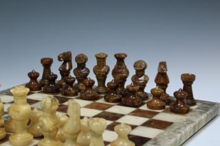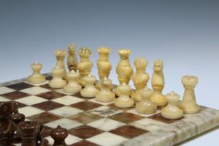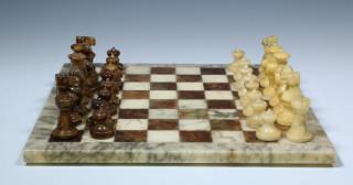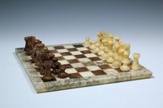 Marmeren schaakspel met bijhorend schaakbord, 20e eeuw,