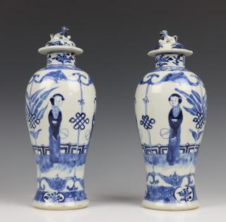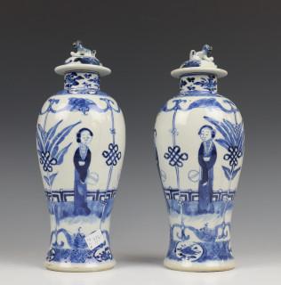 w.o. paar blauw-wit porseleinen dekselvazen, 19e eeuw (alle met defecten)